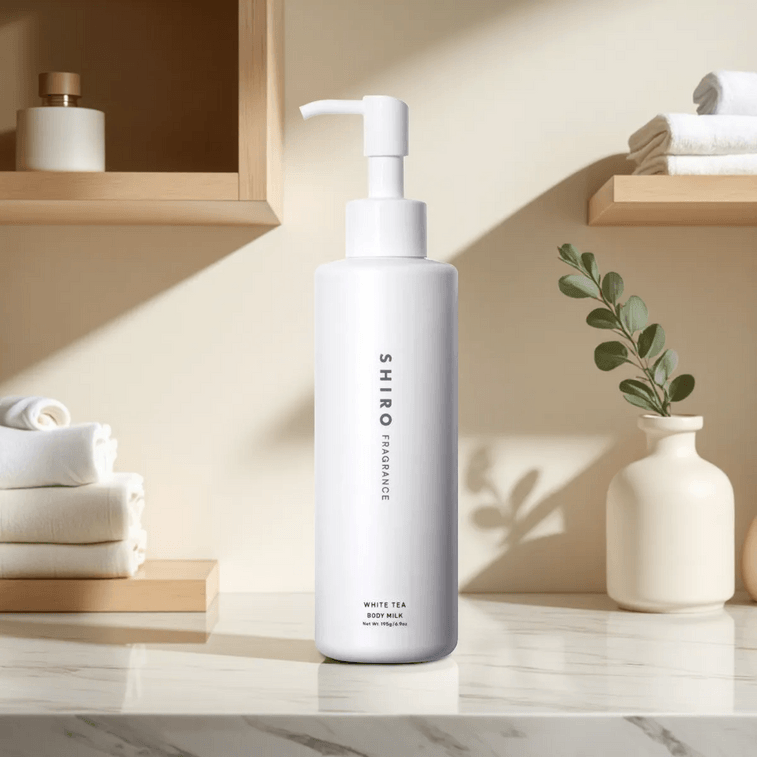 日本SHIRO 香氛身体乳 北海道小众保湿润肤乳 清新水润 持久留香 白茶香 195g 男女皆宜中性香【日版】