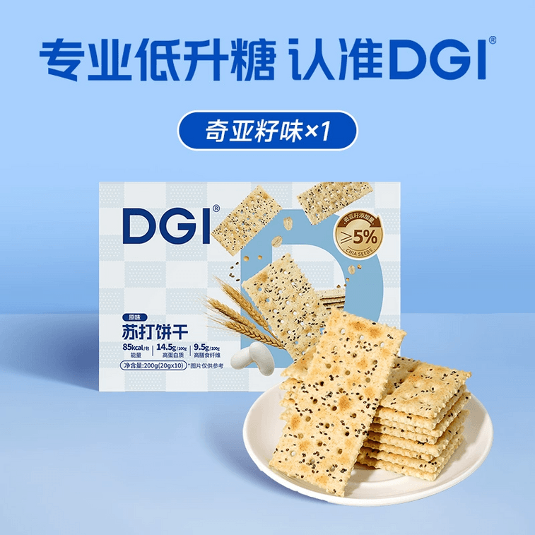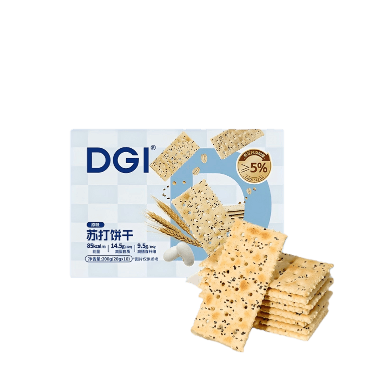 【中国直邮】 DGI 全麦苏打饼干(奇亚籽味)低咸味 无蔗糖 低热量 代餐零食 1盒