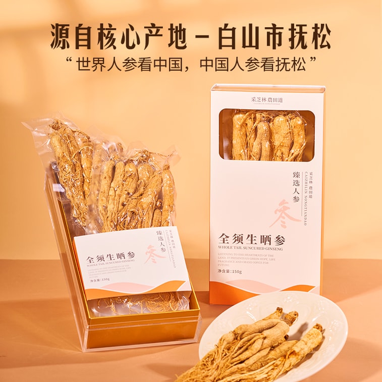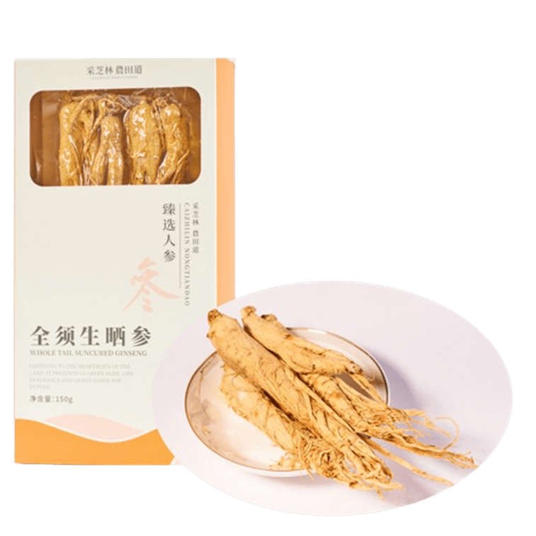 采芝林 全须生晒参 150g 道地长白山人参老参 一整根完整须 无硫熏养生熬夜 大补元气 补气 泡水煲汤煮粥 送礼送长辈