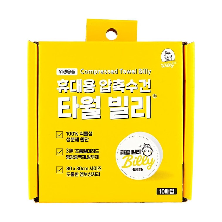 韩国WILLY365 压缩毛巾 遇水膨胀 独立包装 户外露营洁面巾 旅行出差一次性洗脸巾 10片装