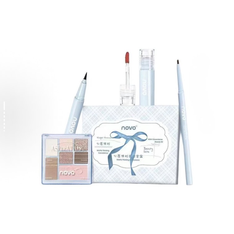 【中国直邮】 NOVO 心愿便利贴美妆套盒(限量版)眼线液笔+眉笔+唇泥+眼影盘 4件装