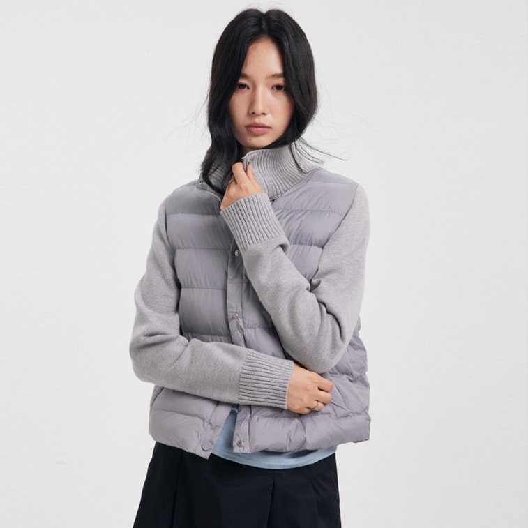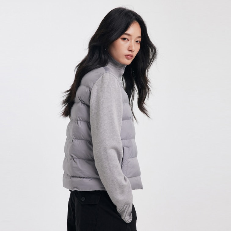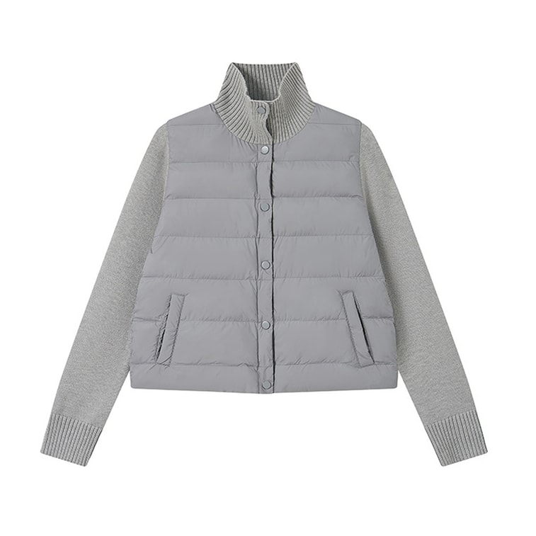 【中国直邮】 HSPM 秋冬空气棉服短款外套女蓬松柔软拼接保暖上衣设计感百搭休闲外套 生椰灰 S