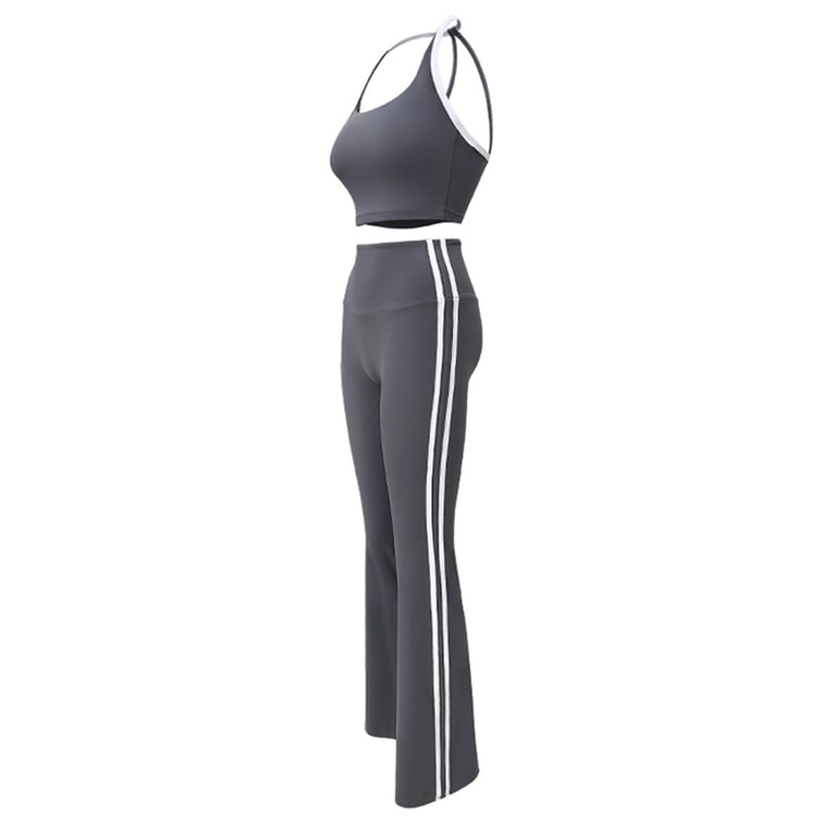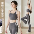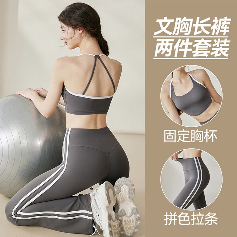 【中国直邮】 HSPM 运动套装 拼色瑜伽内衣 运动户外 女士微喇健身裤两件套 石墨灰套装 L