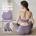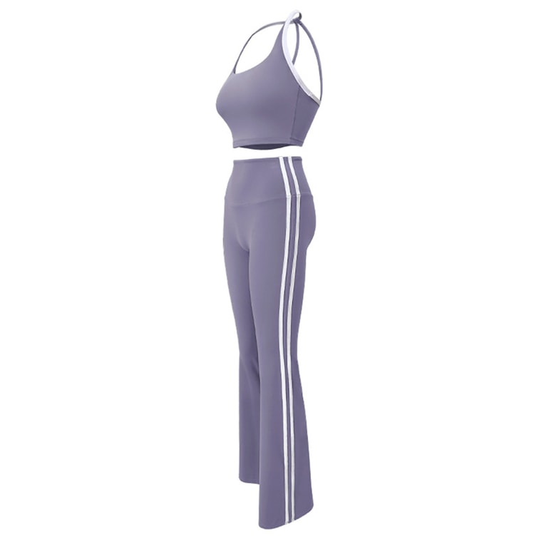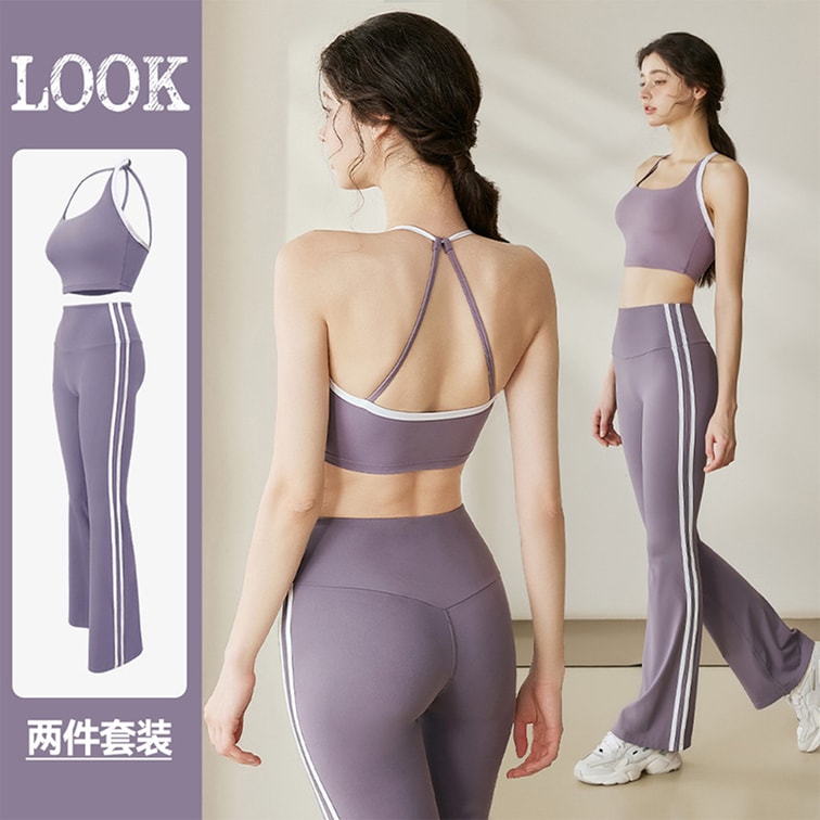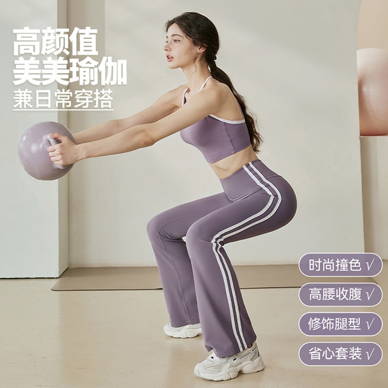 【中国直邮】 HSPM 运动套装 拼色瑜伽内衣 运动户外 女士微喇健身裤两件套 黛紫色套装 S 米黄色