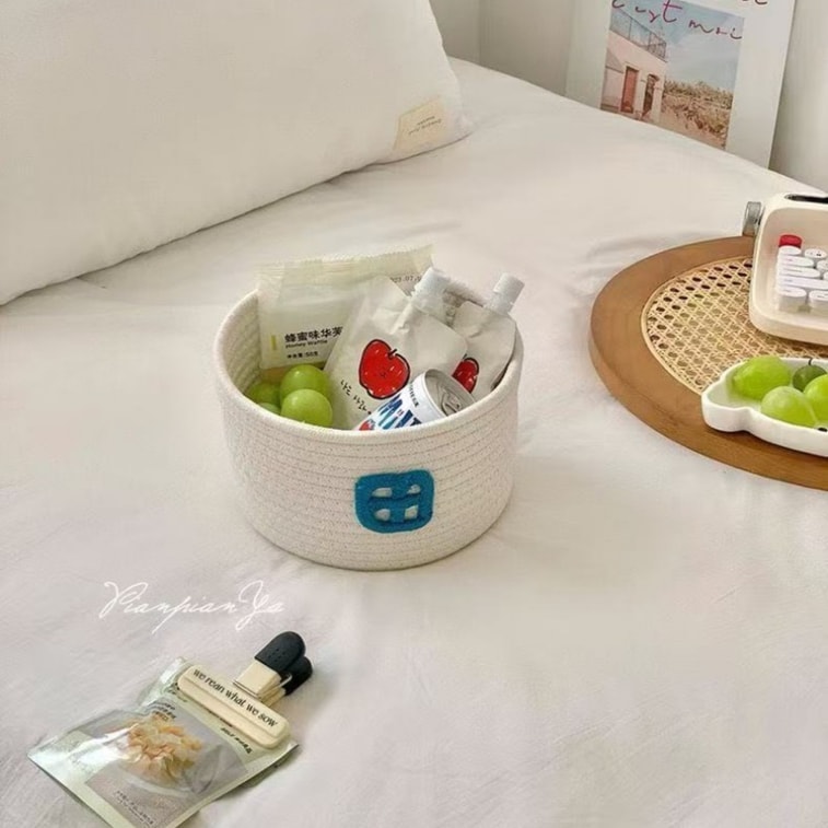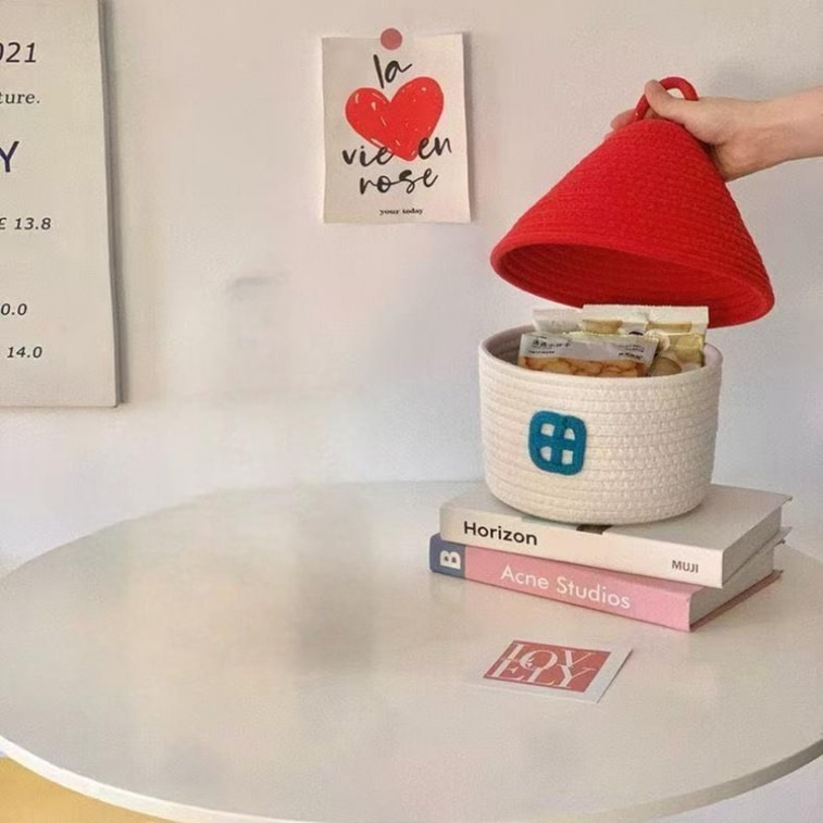 迈迪甄选 小房子棉线编织篮大容量带盖储物桶可爱收纳筐装饰