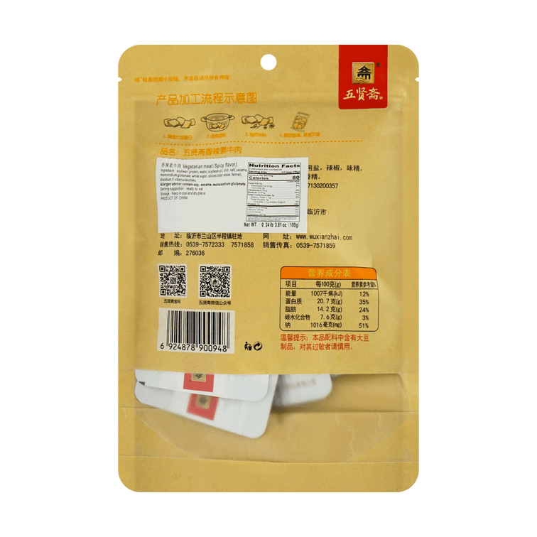 五贤斋 香辣素牛肉 豆干 108g