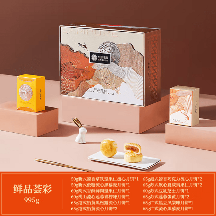 【中国直邮】 臻味坊 鲜品荟彩月饼中秋礼盒 995g 高档新式健康流心月饼送礼