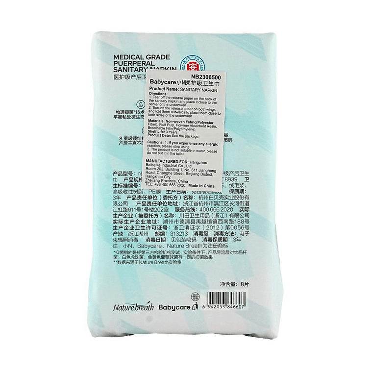 BABYCARE BC 小N医护级卫生巾 420mm 8片/包 吸湿排汗不闷热 柔软亲肤 细护敏感肌/产后可用