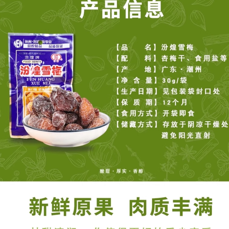 【中国直邮】 汾煌 雪梅话梅8090童年回忆小零食30g*1袋 | 亚米