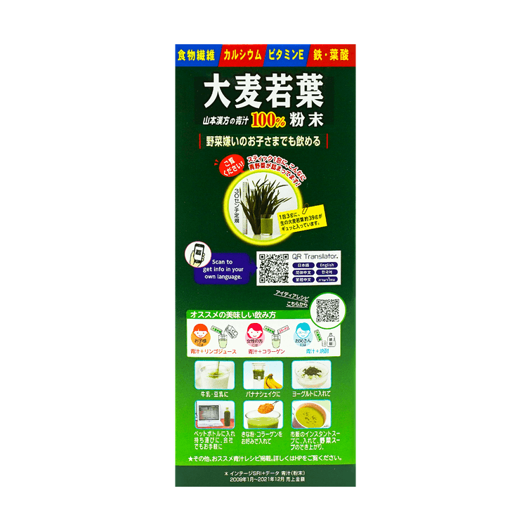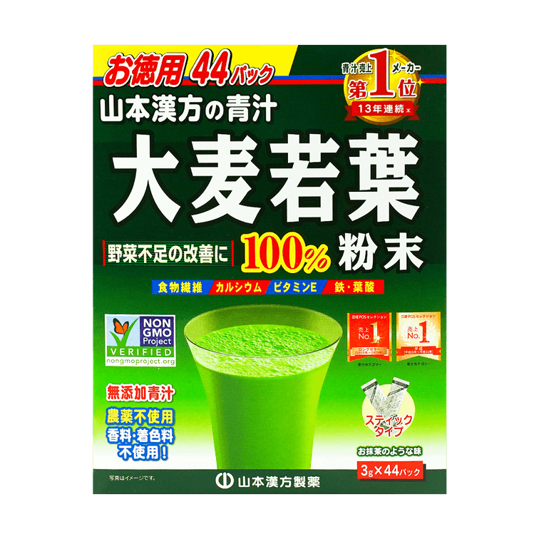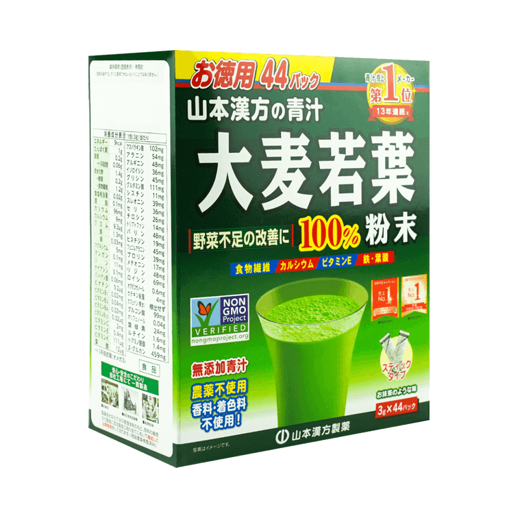 日本YAMAMOTO山本汉方 大麦若叶青汁粉末便携装 抹茶风味 44包入 132g 弥补蔬菜不足膳食纤维代餐粉