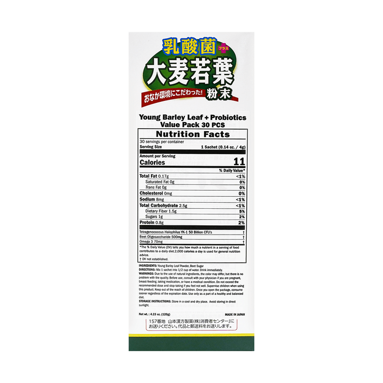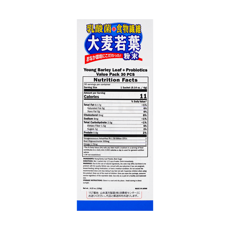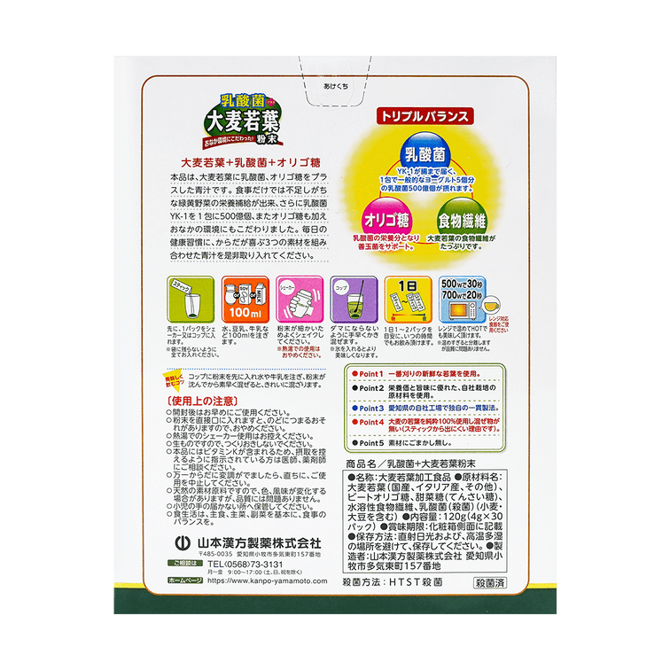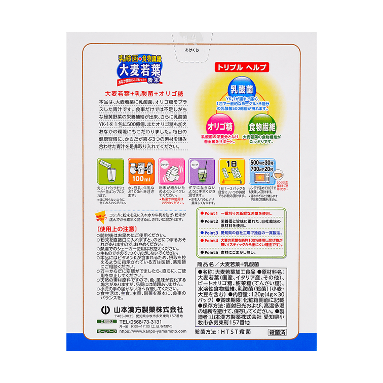 日本YAMAMOTO山本汉方制药 乳酸菌大麦若叶青汁粉末 4g*30包