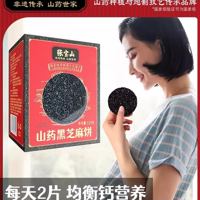【中国直邮】 张宝山 山药黑芝麻饼 高钙营养零食0蔗糖 128g/盒【芝香浓郁 营养健康】