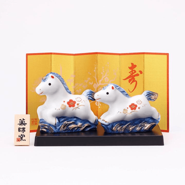 【日本直邮】 日本 药师窑 瓷器染锦招福马年摆件亲子 1件