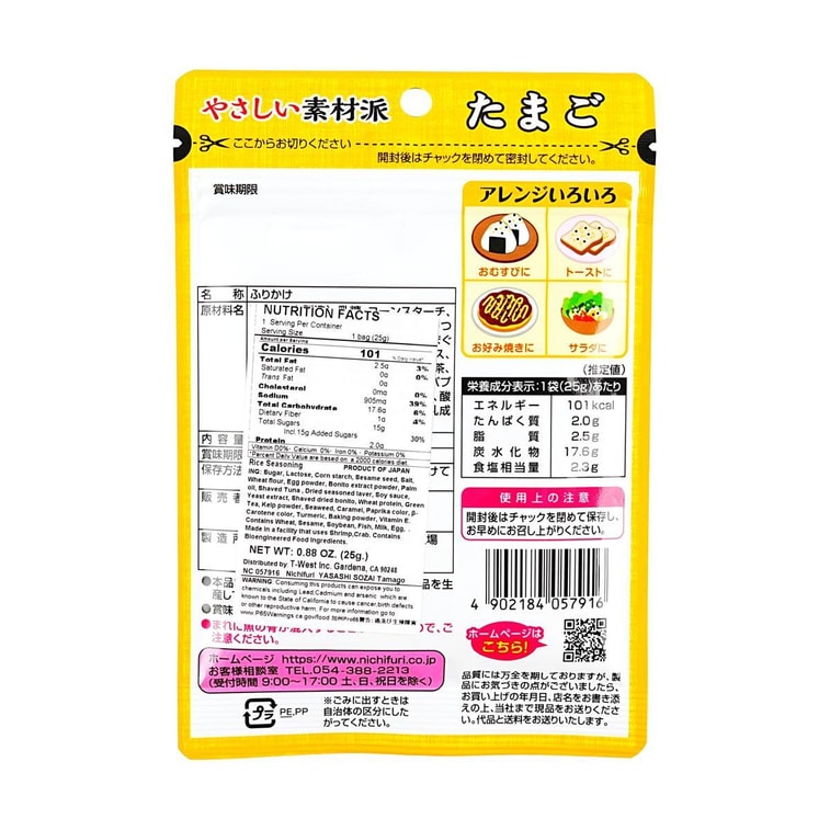 日本NICHIFURI 拌饭香松 鸡蛋味 25g【适合用于米饭乌冬寿司饭团】【无人工甜味剂和香精】