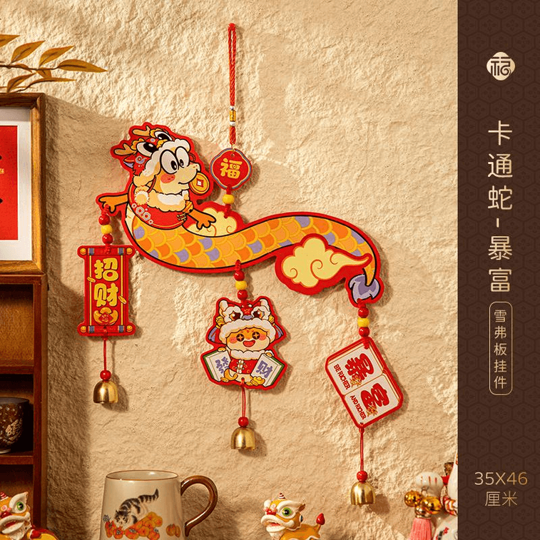 美国 【中国直邮】蛇年春节新年装饰品氛围布置挂件2025新款元旦过年喜庆入户门挂饰35*46cm暴富*1件