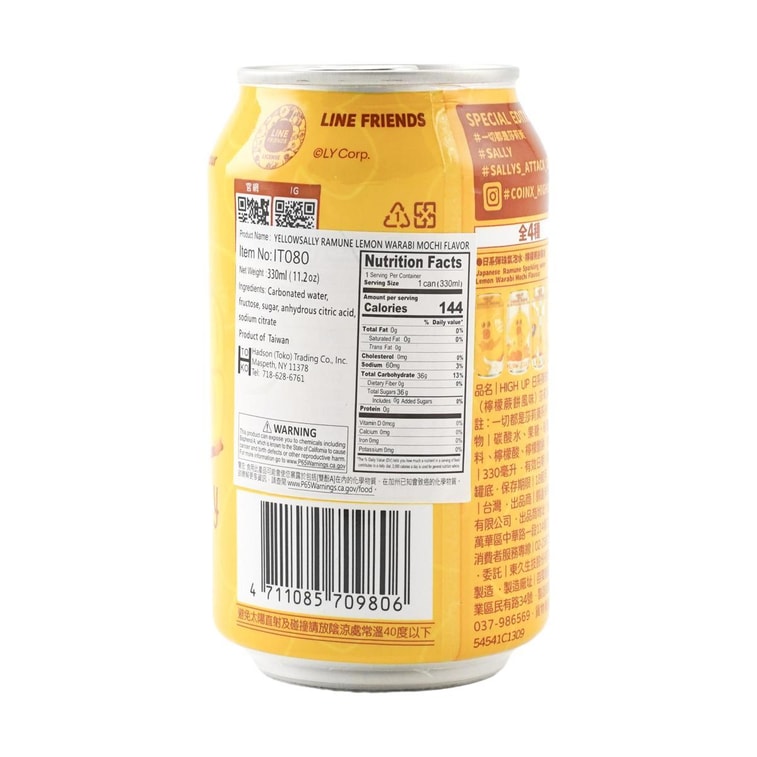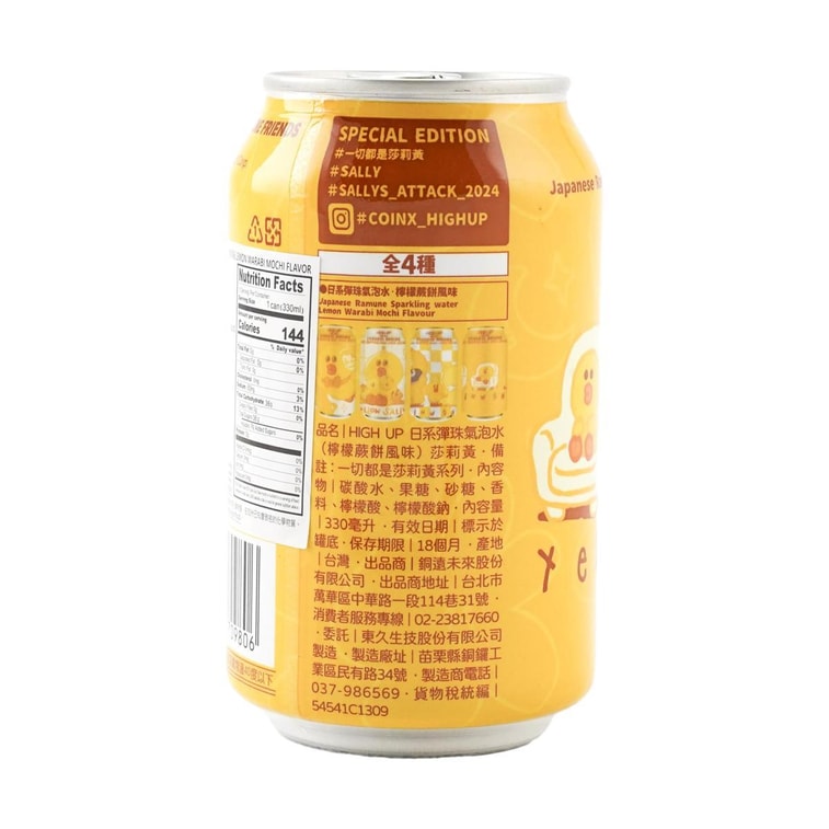 台湾HIGH UP嗨啊 日系弹珠气泡水 柠檬蕨饼风味 330ml【莎莉黄系列】