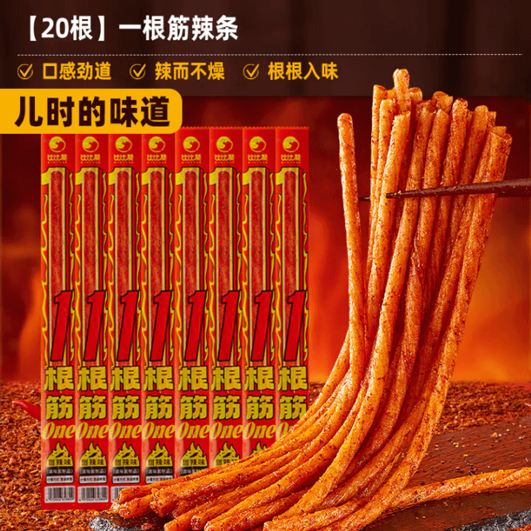 比比赞 一根筋辣条20根超长素牛筋网红休闲小零食面筋素食240g