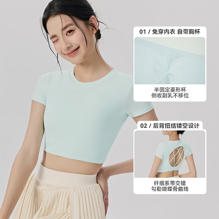 【中国直邮】 HSPM 瑜伽套装 圆领性感美背运动 普拉提健身上衣 椰奶白色 文胸加短袖T恤 XL码