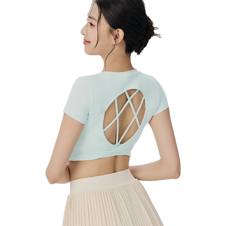 【中国直邮】 HSPM 瑜伽套装 圆领性感美背运动 普拉提健身上衣 水玻璃色 文胸加短袖T恤 S码