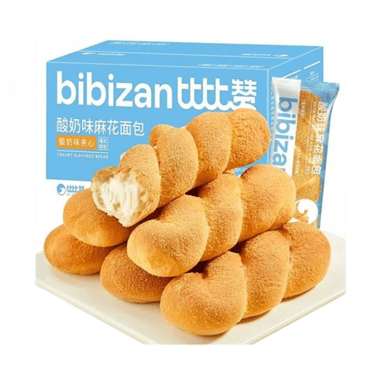 【中国直邮】 比比赞 酸奶味麻花夹心面包早餐网红零食小吃休闲食品300g/盒
