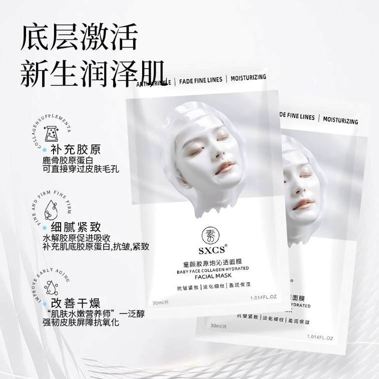 【中国直邮】 素秀臣氏 童颜胶原炮沁透面膜 补水美白紧致抗皱 5片/盒