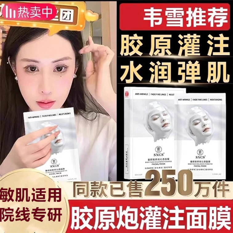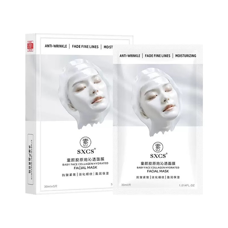 素秀臣氏 童颜胶原炮沁透面膜贴 水润胶原蛋白面膜 美白 紧致抗皱 5片/盒 适合初抗老的面膜 妆前快速补水 提亮面膜