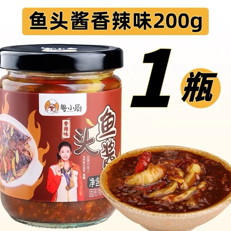 【中国直邮】 粤小厨 温州风味鱼头酱剁椒鱼头专用酱豆豉蒸鱼酱料微辣鱼头酱200g*1瓶