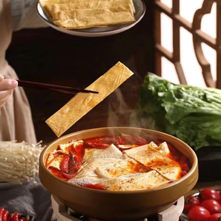 炎坊 石屏豆腐皮,国家地理标志认证。承袭自石屏的井水点制古法,0添加。泡发快、柔韧不散、豆香浓郁。无论是火锅、凉拌还是家常小炒,都能吸饱汤汁,让菜肴风味层层升级(400g)