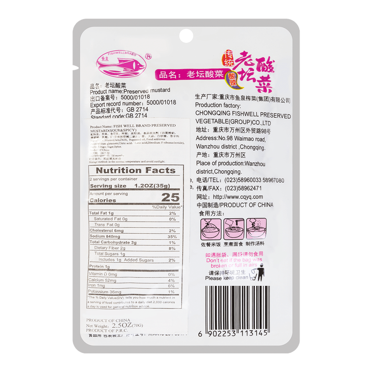 鱼泉牌 老坛酸菜 酸辣味 70g