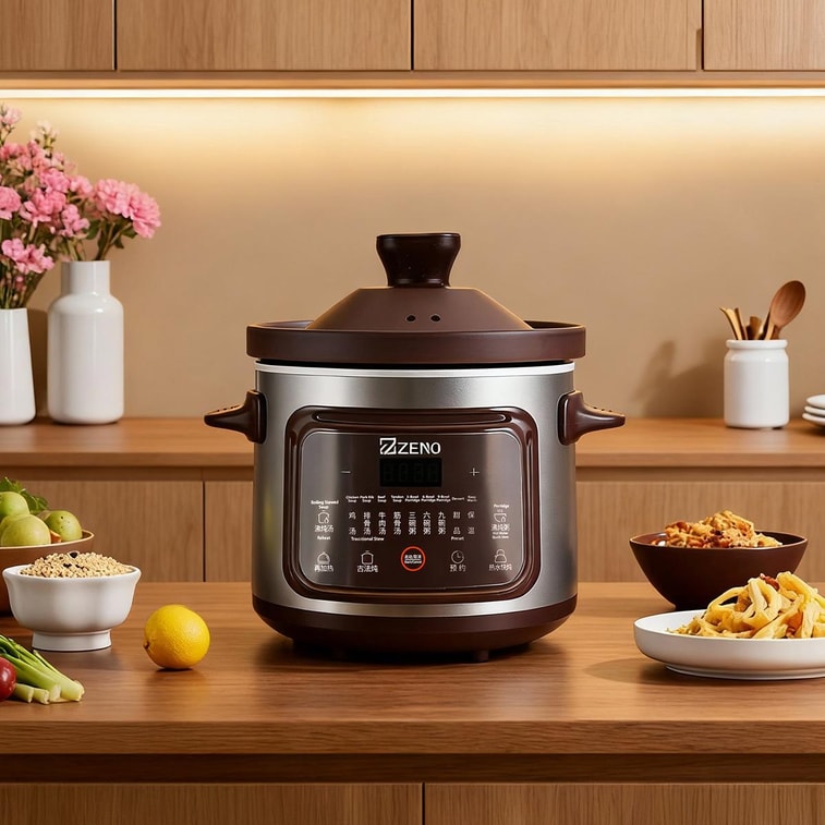ZENO 紫砂电炖锅 多功能电砂锅电炖盅 煲汤锅炖汤锅 4L-ZSD-406U【限量送磁力搅拌咖啡杯】