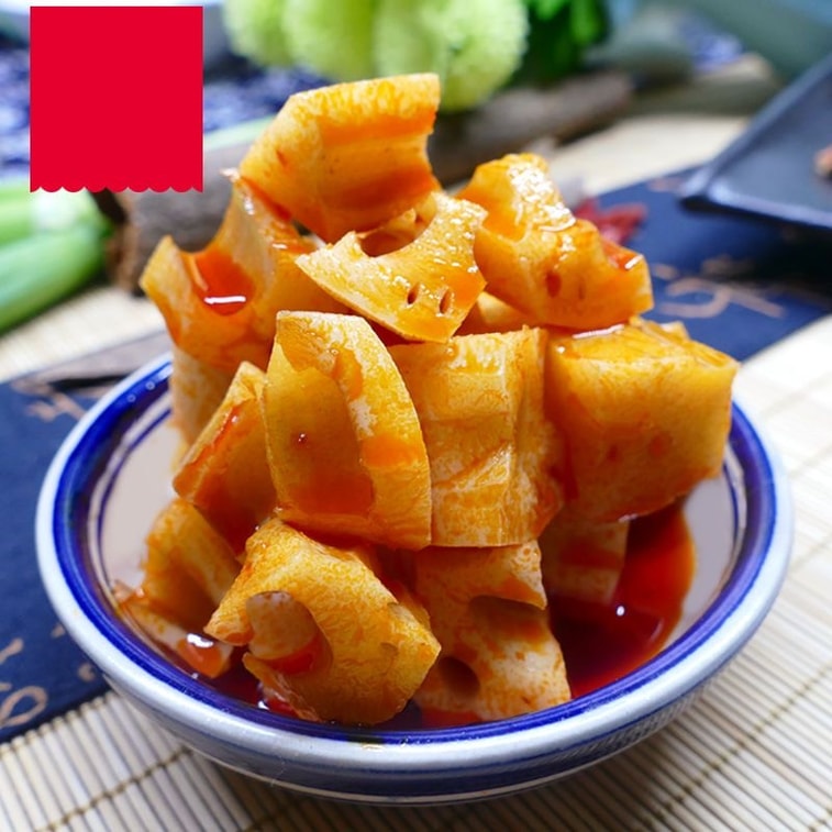 【中国直邮】 章鸭子 香辣莲藕卤味藕丁麻辣零食藕丁下饭菜素食5包约100g开袋即食黑鸭味