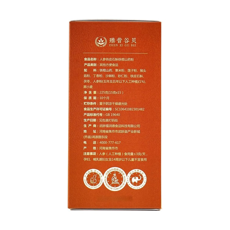 臻昔谷贝 人参铁皮石斛铁棍山药粉 营养早餐代餐粉 15g*15包入 养护脾胃