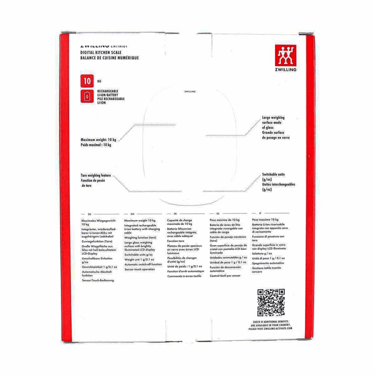 德国ZWILLING双立人 厨房电子秤 高精度称重 烘焙食物秤 白色