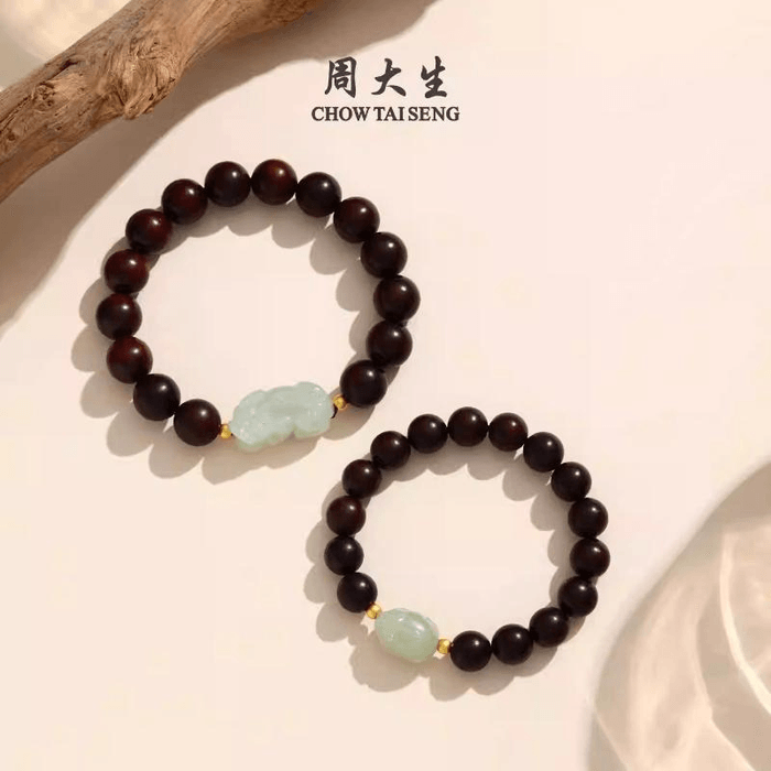 【中国直邮】 周大生 小叶紫檀手串足金田玉貔貅文玩新中式美学 女款 10mm | 亚米