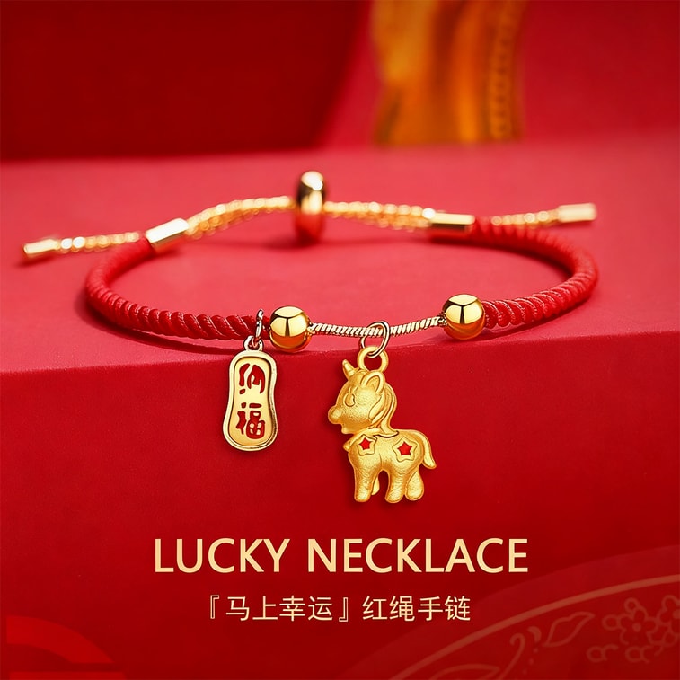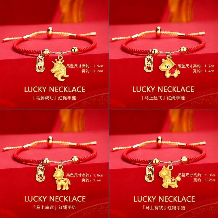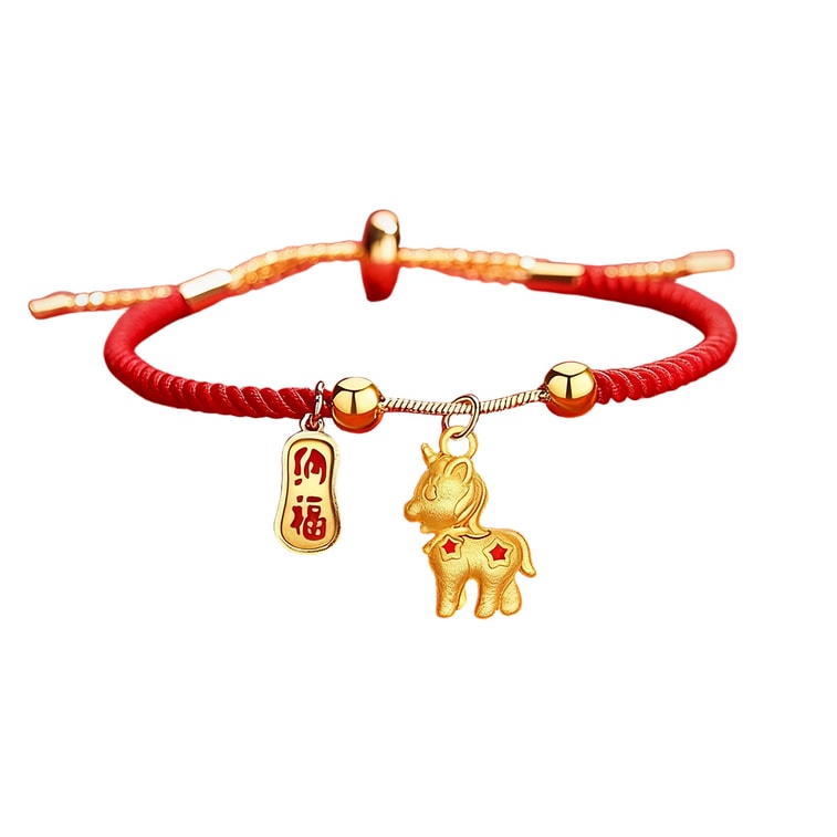 【中国直邮】 HSPM 生肖马年红绳手链 风新款 新年祈福可调节手绳 新年礼物 马上幸运抽拉红绳F 1个装