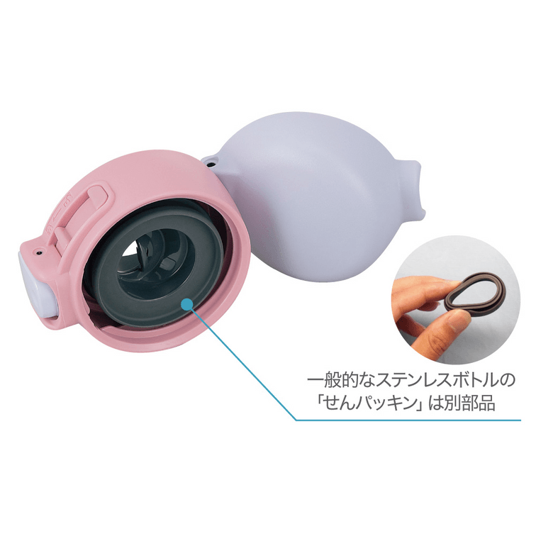 - 产品特点:1.本款儿童用的保温杯有很多“便于孩子使用”的特点,同时搭载“无缝式中栓”,打理起来更加轻松。n2.附带“牢固锁扣”,造型是可爱的小熊耳朵,即使用孩子的小手也很容易开关。n3.业界自创,将中栓和垫圈一体化的“无缝式中栓”,中栓和垫圈合二为一,具有“打理简单”、“不会忘记安装”、“不会丢”的特点。n4.“导流引水口”,易于直饮,易于倒入杯子中。并且左右的凸起形成导流,水流更易集中在正中间,所以即使是孩子的小嘴也很容易饮用,不易溢出。n5.施以“易洁涂层(PLUS)”,瓶身内侧不易沾染污垢,主体内侧的涂层具有高拔水性、表面光滑,不易附着污垢和饮料的味道,清洗简单,每日打理更轻松。n6.能够装运动饮料,易洁涂层(PLUS)能充分阻隔运动饮料中所含的盐分。n7.主体能够水洗(请勿放置于水中)。n8.【高保温、保冷力】n①双重不锈钢真空魔法瓶构造,长时间保持适度温度。n②保温效力95℃的热水6小时后保持在71℃以上。n③保冷效力4℃的冷水6小时后保持在8℃以下。n9.纤细、小巧的形状,小孩子也很容易拿握。n10.具有透气孔构造,能够咕嘟咕嘟地痛快喝水,透气孔构造让饮料顺畅流出。n11.具有“避免飞溅机制”水滴不易飞溅,盖子都打开前会先暂停一次,其暂停震动会令凝结在盖子上的水滴滴落,避免水滴的飞溅。n12.避免结露构造,盖子部分采用空气断热层,即使放入冷饮也不易结露,放入书包中十分安(心)。n13.保护套能够机洗(请放入洗衣袋,选择手洗程序)。n14.【三种图案】蓝色恐龙,粉色樱桃,紫色独角兽。