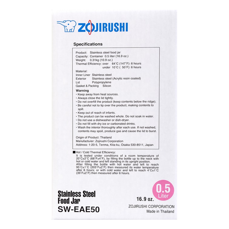 日本ZOJIRUSHI象印 不锈钢真空保冷保温焖烧杯 #闪粉色 500ml SW-EAE50-PS