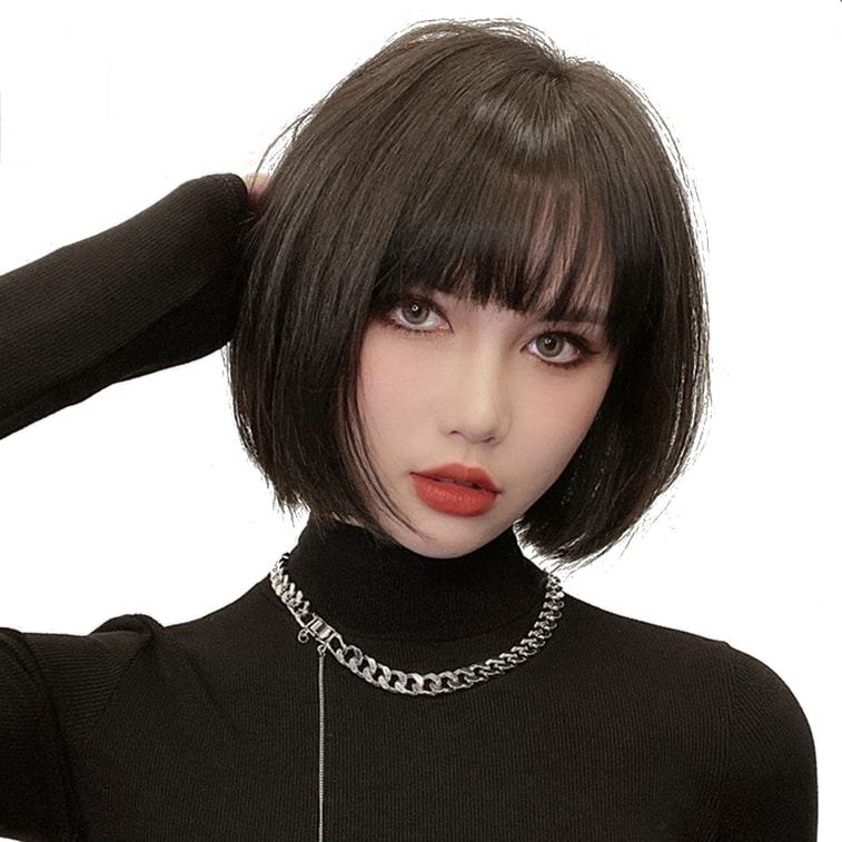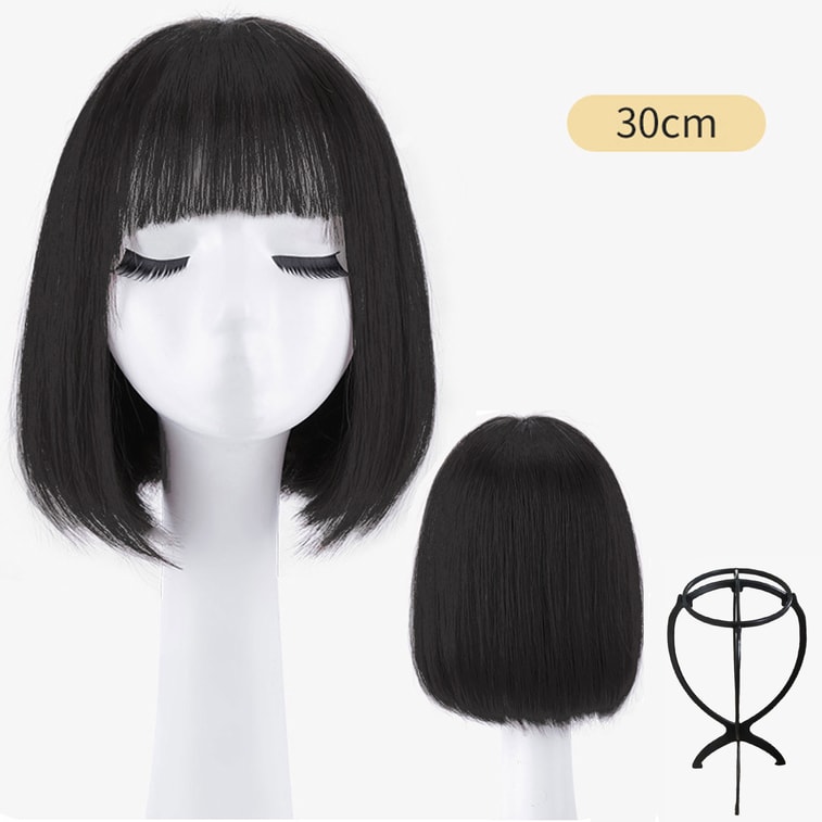 【中国直邮】全真人发锁骨假发 递针头套 空气刘海 30cm 自然黑 | 亚米