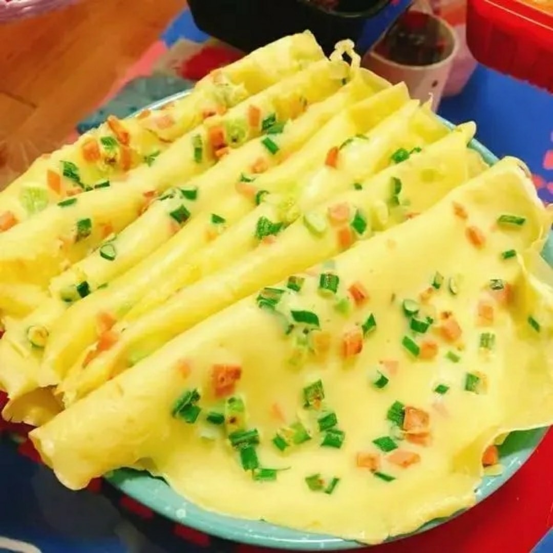 3.平底锅里刷油,舀入面糊,摊成圆饼状,成圆饼状,中火煎,煎至2面金黄就可以啦!