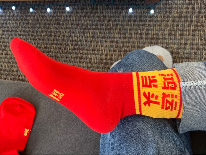 买的时候是$12.99的价格,再加上全场88折,到手相当于$11.43,四双袜子,加上还是这种有个性的新年红袜,性价比还是很高的。