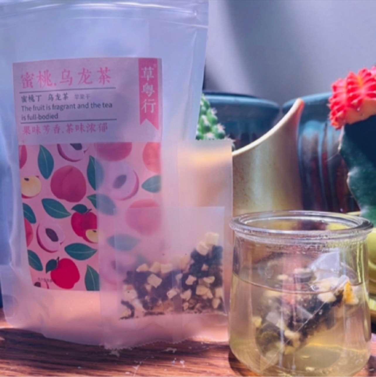 草粤行蜜桃🍑乌龙茶,一包共有十小袋,一包一杯很方便!配料清香的乌龙茶和蜜桃丁,热泡冷泡都行滋味丰富,果味芳香,茶味浓郁!典型的粤式茶饮料系列!