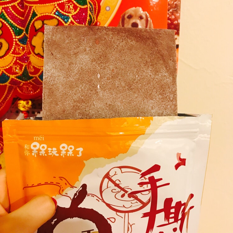 打开之后很薄的一层……味道意外的像小时候吃的滑滑丹。随机的包装上是“你才是猪肉脯你们全家都是猪肉脯”🐷其实我更想吃猪肉脯是真的
