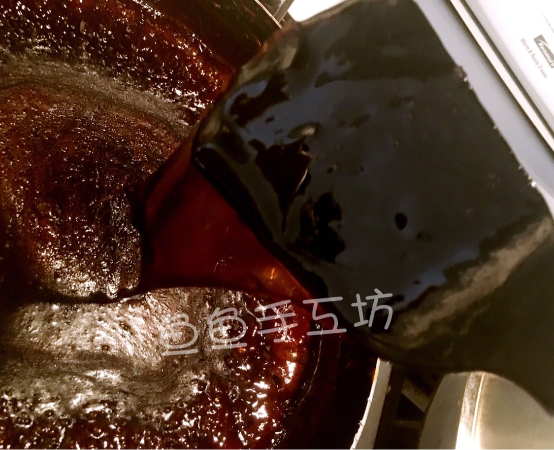 继续用小火熬煮至挂旗状态(浓稠半流动状态),关火。