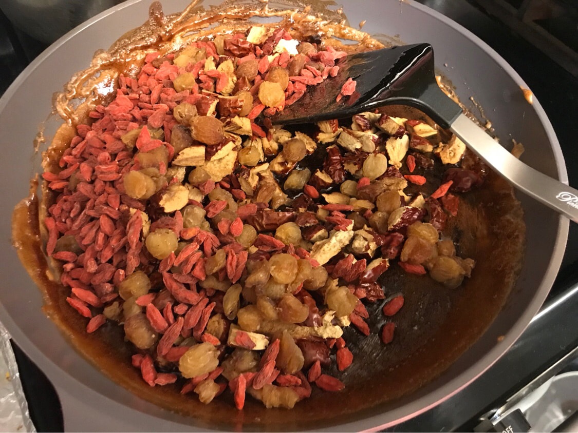 再把所有剩下的材料(核桃、黑芝麻、枸杞、桂圆)加进去混合拌匀