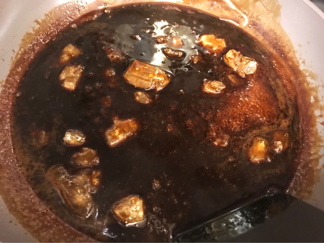 再加入老冰糖,小火熬煮至融化