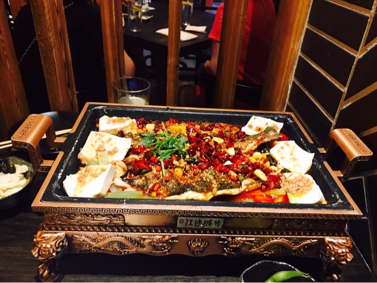 推荐一个大家应该都知道的烤鱼-江边城外!!在法拉盛王子街那边,就是川山甲楼上,大门开在敦城那边。我们点的是豆花烤鱼,加了千页豆腐和藕,选的中辣,因为听说很辣。份量很足两个人吃到撑,一开始没觉得很辣,越煮越入味,后来辣的点了两瓶可乐!!真的很好吃!!!强烈推荐!!!