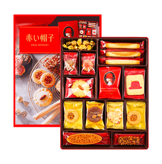 日本AKAIBOHSHI红帽子 红盒子 节日什锦曲奇饼干甜点 12味 45枚装 388.2g 铁盒装【点心伴手礼】