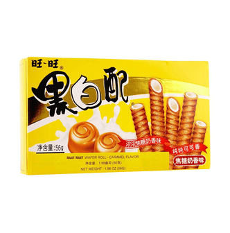 台湾旺旺 黑白配夹心蛋卷 焦糖奶香味 56g【童年经典】