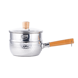YANOSAKU矢之作 日式锤纹不锈钢雪平锅 一人食蒸煮两用小奶锅 18cm 附蒸屉 燃气电磁炉通用