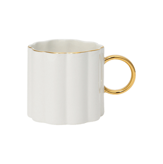 日本FRANCFRANC 金边贝壳陶瓷马克杯子水杯子 花边精致咖啡杯子 白色